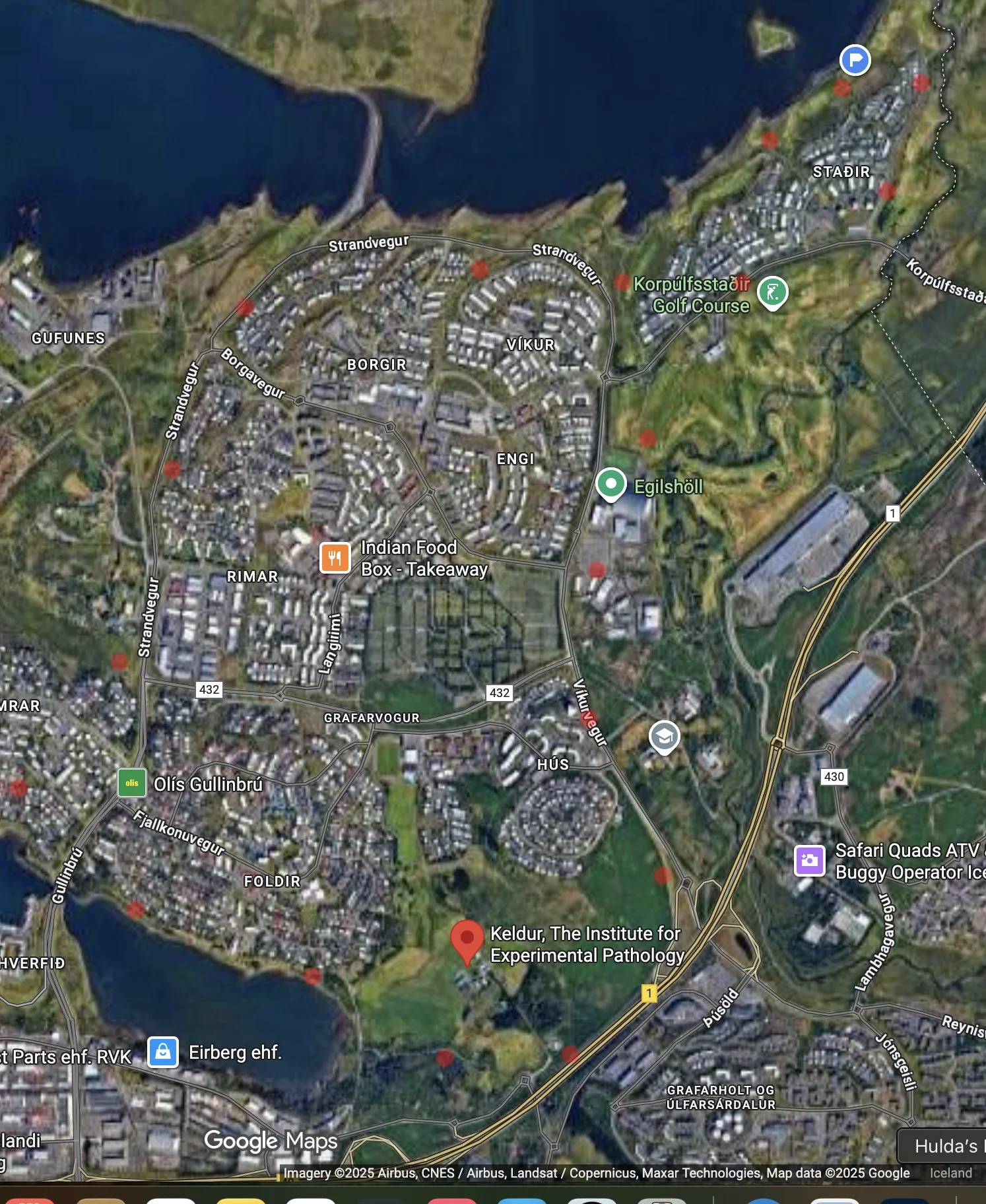 Gönguleiðin, rauðir deplar er þar sem ég stoppaði.