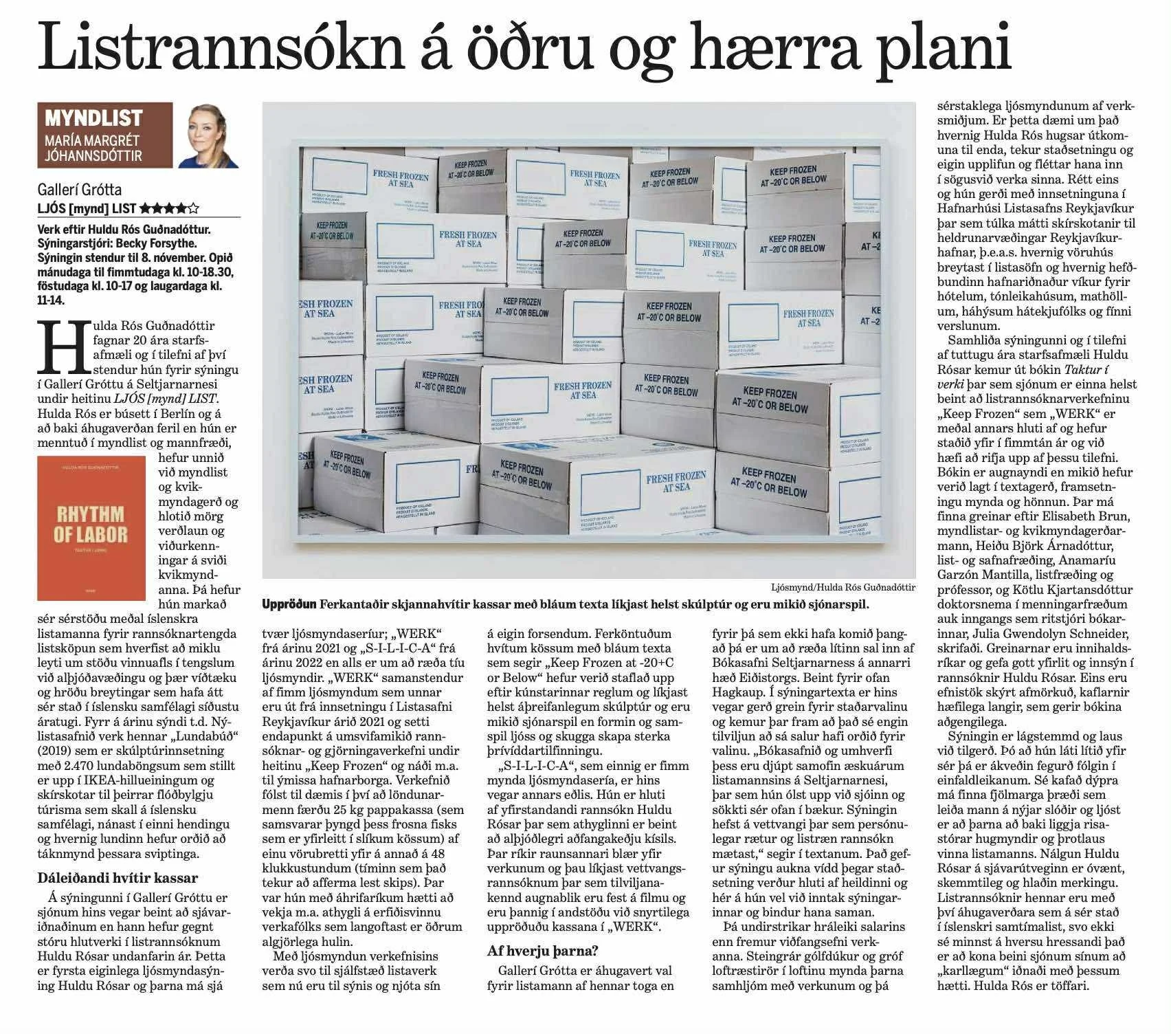 Review by María Margrét Jóhannsdóttir, art critic at Morgunbladid Feuilleton section on the 31st of October 2025 under the headline ‘An Artistic Research on Another and Higher Plane’